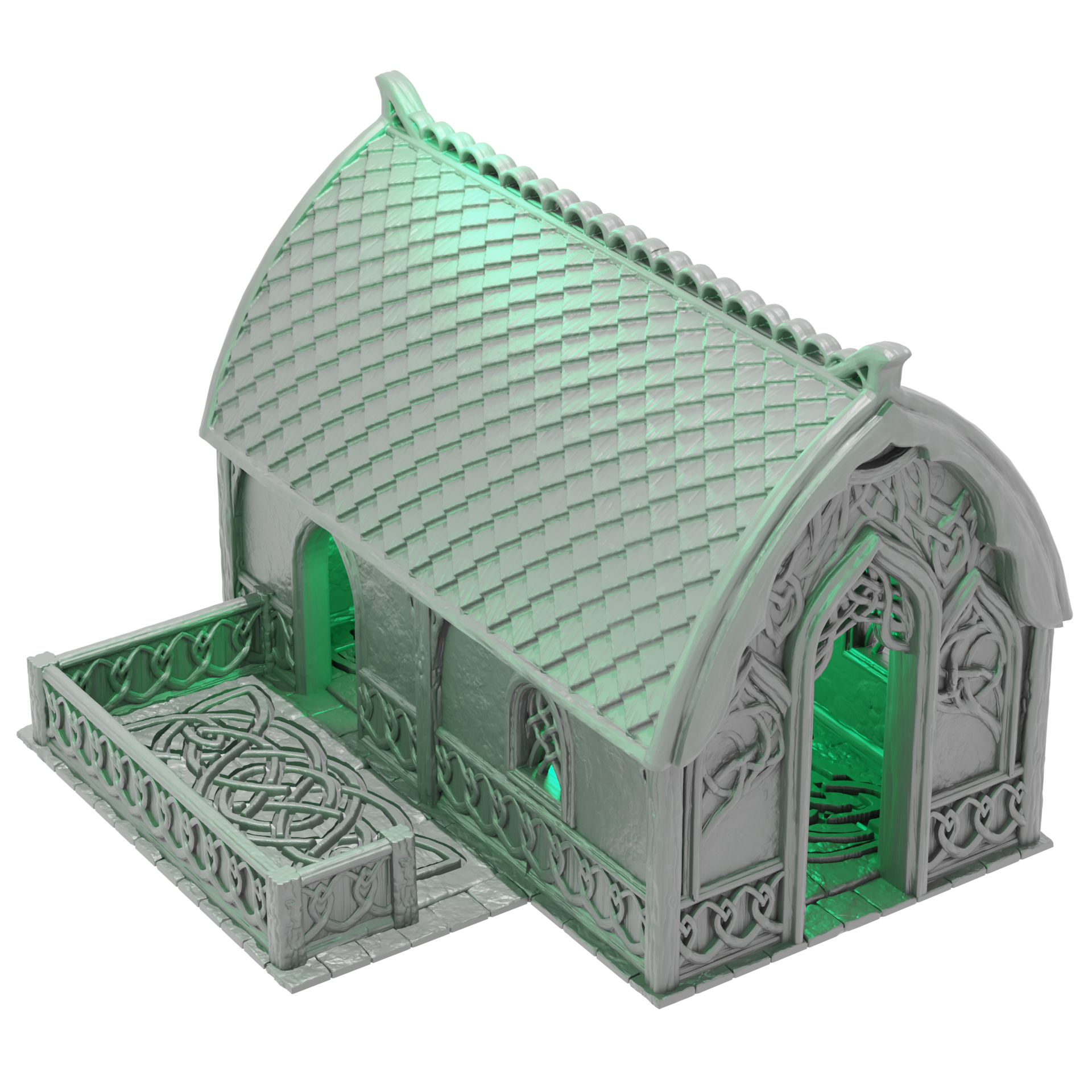 The Barracks of Noldareth stand as a testament to the elven dedication to discipline and unity. With elegant arches and fortified walls, this structure balances beauty with strength, serving as both a training ground and living quarters for the city’s defenders. Its refined yet resilient design makes it a striking addition to any tabletop elven cityscape.