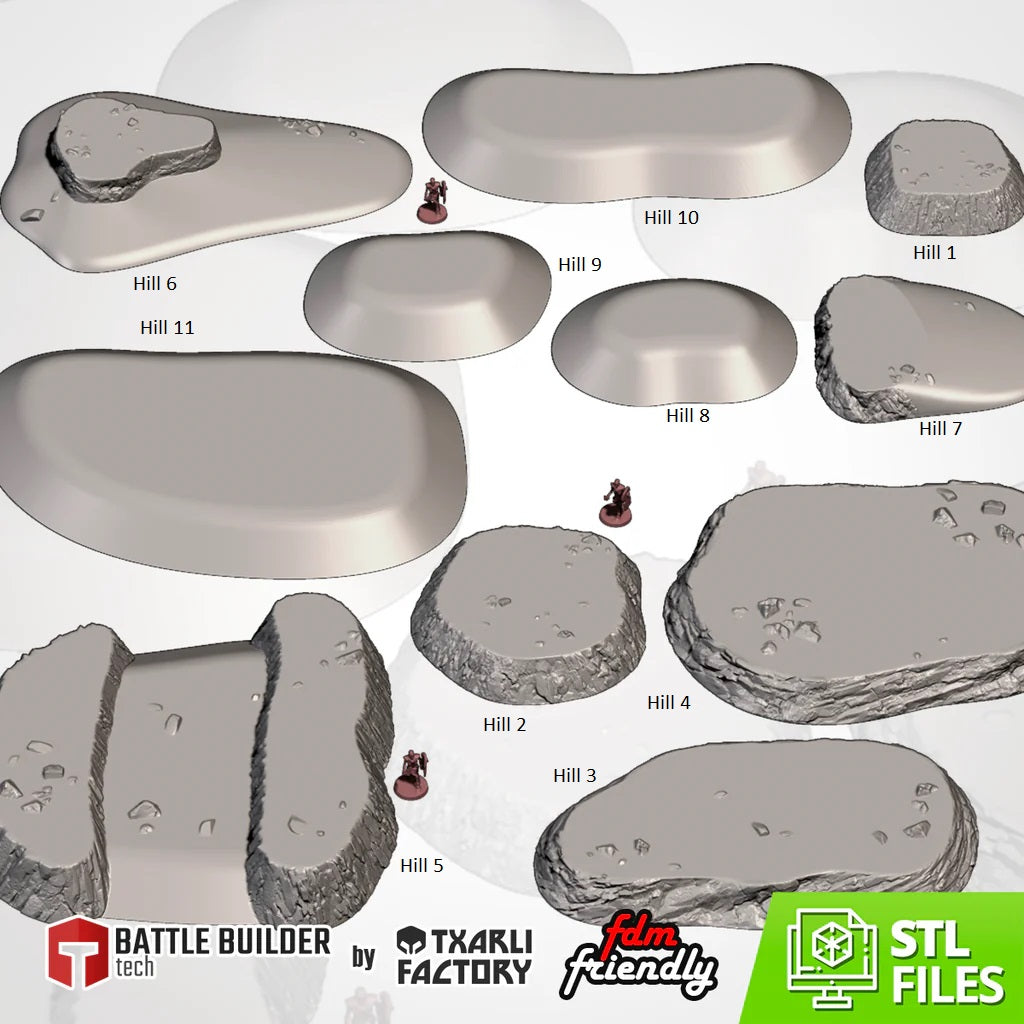 Whether you're looking to break up line of sight, create strategic vantage points, or just add depth to your table, these hills are the perfect modular solution. Their subtle natural contours and compatibility with other terrain sets make them a must-have for both competitive and narrative games.