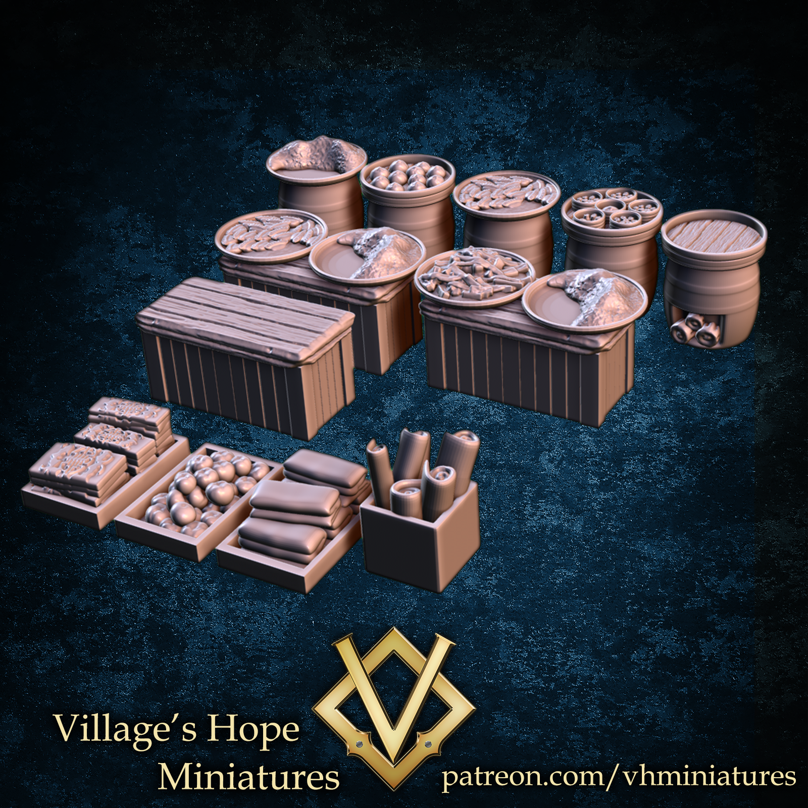 • Modular detailing—fill with crates, goods, or NPCs to match your scenario