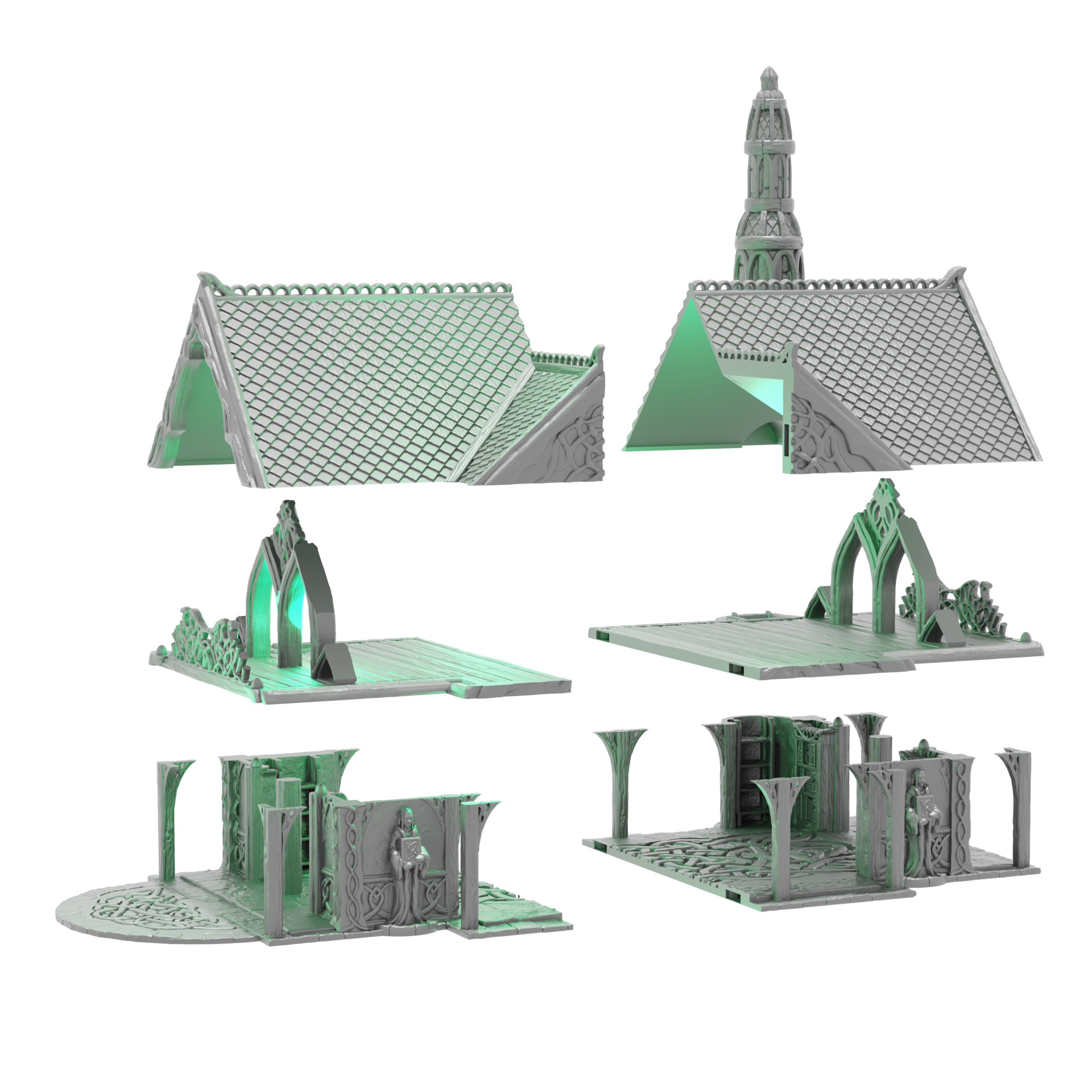 Step into the heart of elvish knowledge with the Great Library of Noldareth. This majestic structure combines elegant stonework, soaring arches, and intricately detailed façades, reflecting the sophistication of the elvish city. Perfect as a centerpiece for tabletop battles or RPG scenarios, the Great Library provides both visual grandeur and tactical interest with multiple levels, open interiors, and elevated areas for line-of-sight advantage.